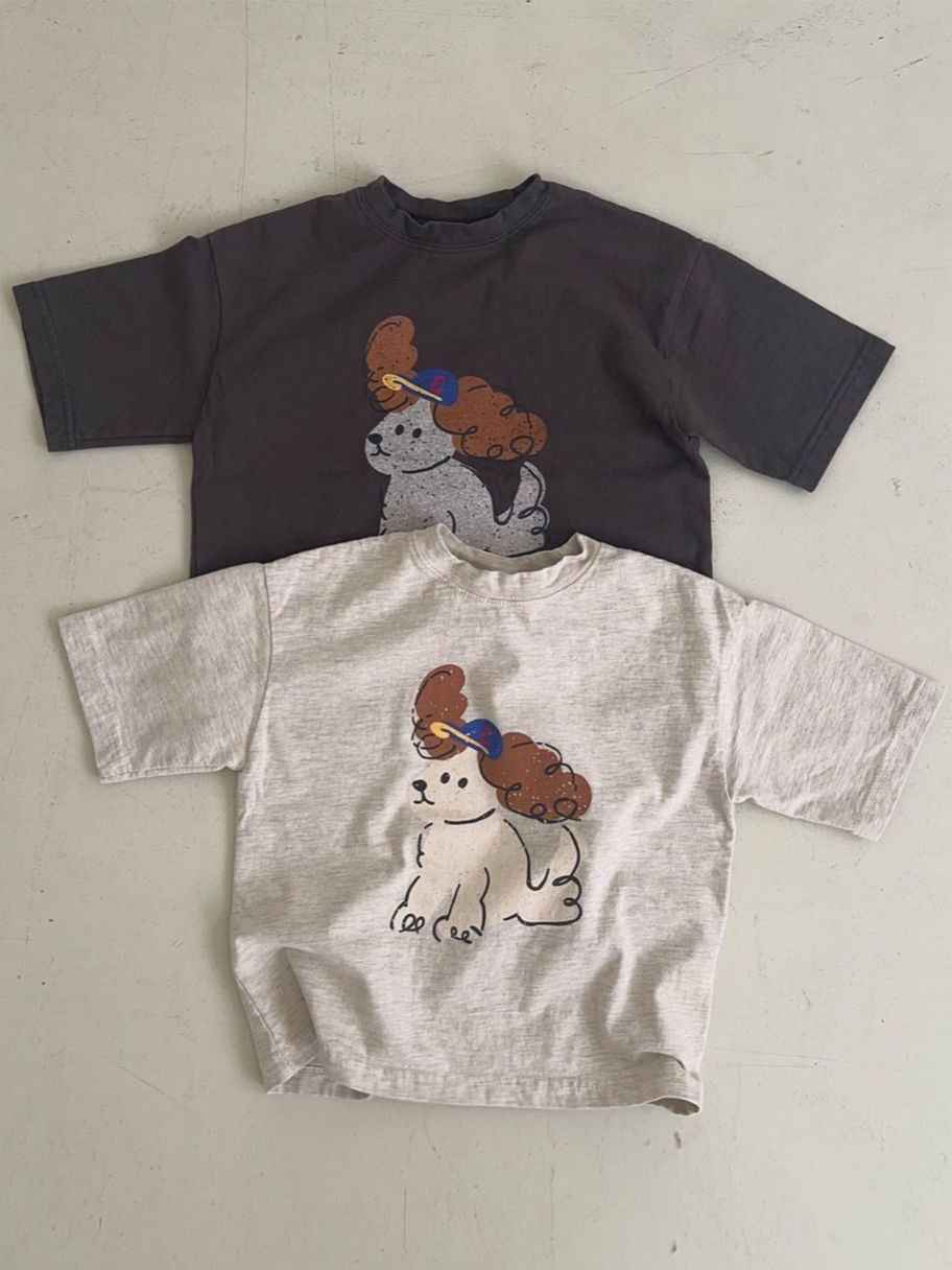 Let the adventures begin in this adorable short-sleeve t-shirt featuring a cute puppy graphic your little one will love! Available in classic charcoal and cozy oatmeal colors, this tee is designed with a slightly loose fit—perfect for running, jumping, and all-day fun. Soft, comfy, and full of personality, it’s a must-have for every playful pup lover!