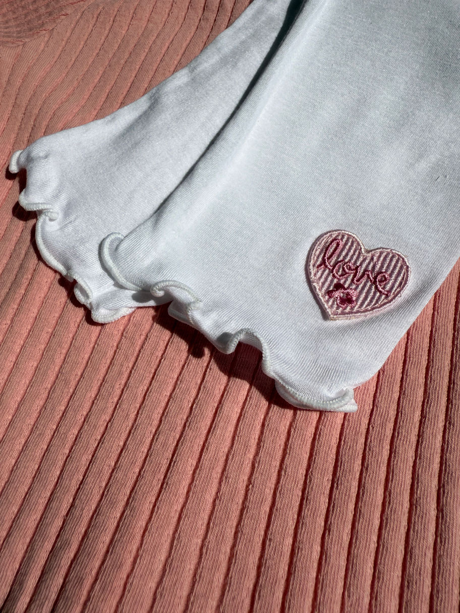 Featuring delicate lettuce-edge hems for a playful touch and a charming heart-embroidered patch that adds just the right amount of sweetness, they’re perfect for pairing with any summer top or dress.