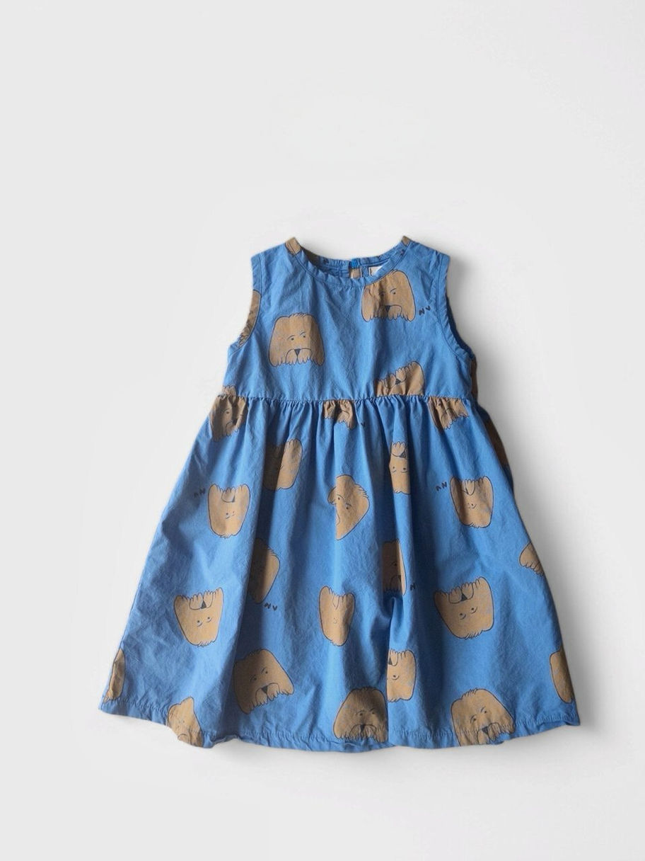 This sleeveless summer dress brings instant smiles with its fun and unique puppy face pattern, available in playful cobalt blue and soft light grey. Made from 100% cotton (40-count, bio-washed), it’s airy lightweight, and extra gentle on the skin—perfect for warm, sunny days. With a relaxed fit and easygoing charm, this dress is made for twirls, giggles, and everyday adventures.